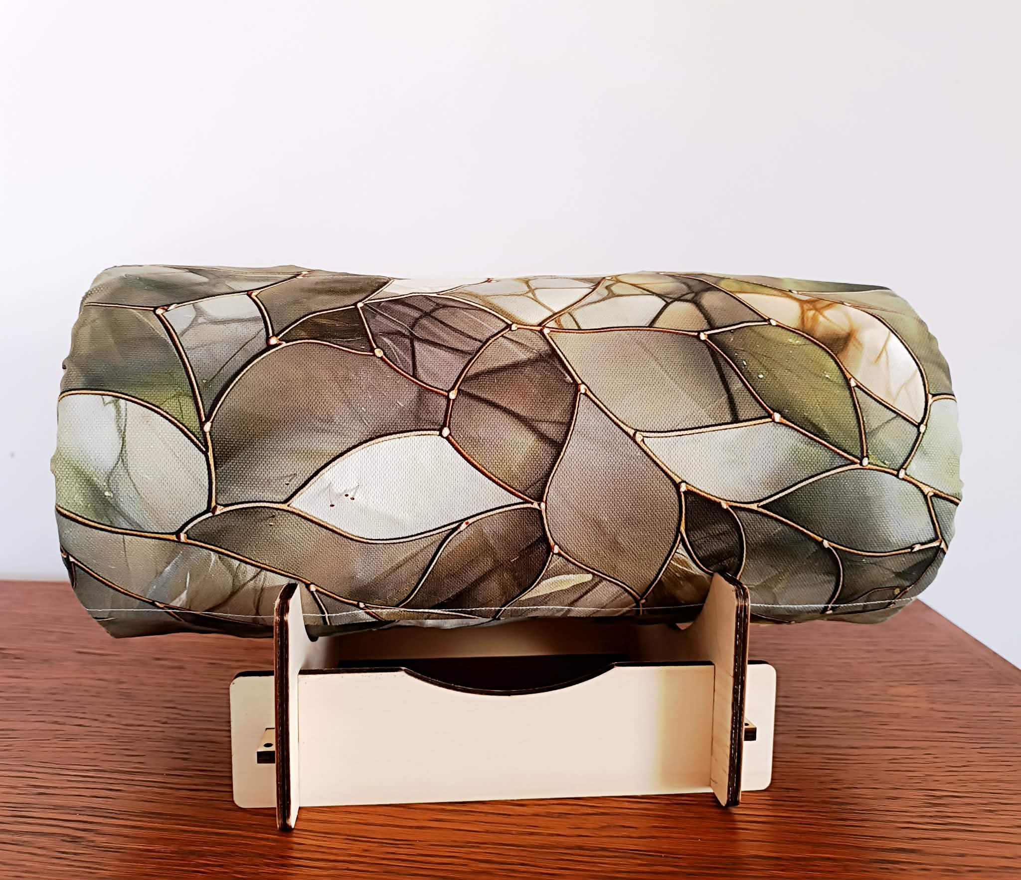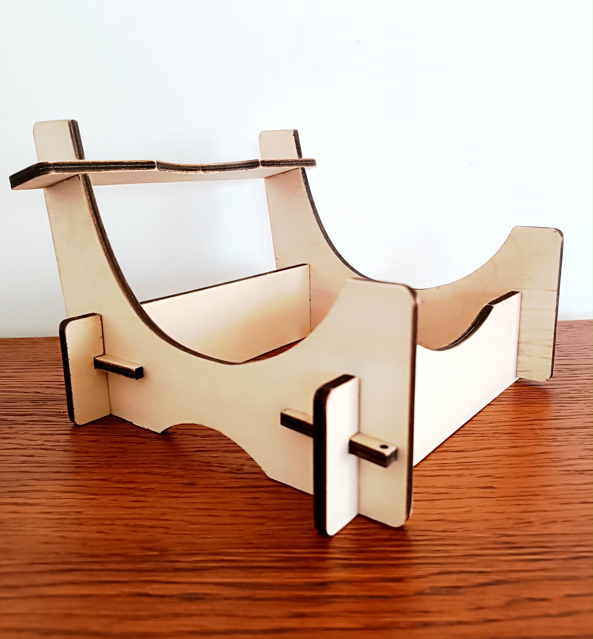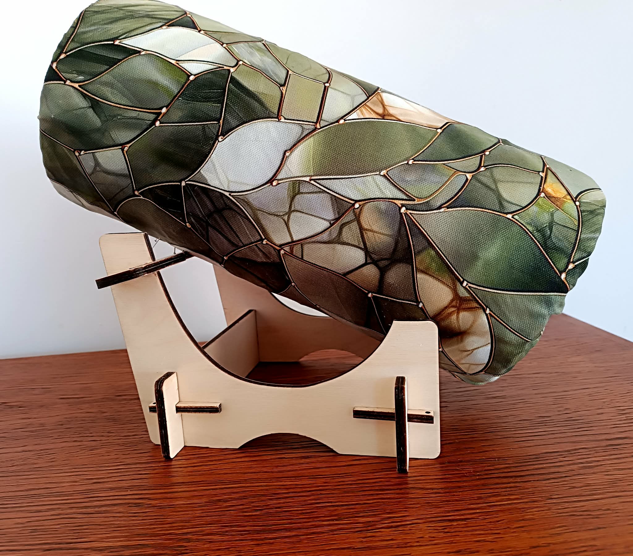Stojak składany podtrzymujący wałek do wyrobu koronki klockowej.  Dostosowany  do wałków o rozmiarze  S i M